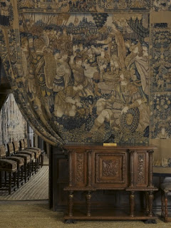 Well as this is a blog about miniatures, I couldn't forget to include some Tudor ones here could I? Above is the Tudor Hall from the Thorne Room Collection (one of the finest miniatures collections in the world!). Look at that ceiling, it's amazing! The feature at the end of the room is called a screens passage, and the area above it is called a minstrels' gallery. Note the panelling and ornate carving. Not sure how 'authentic' the floor tiles are, but they look good here.